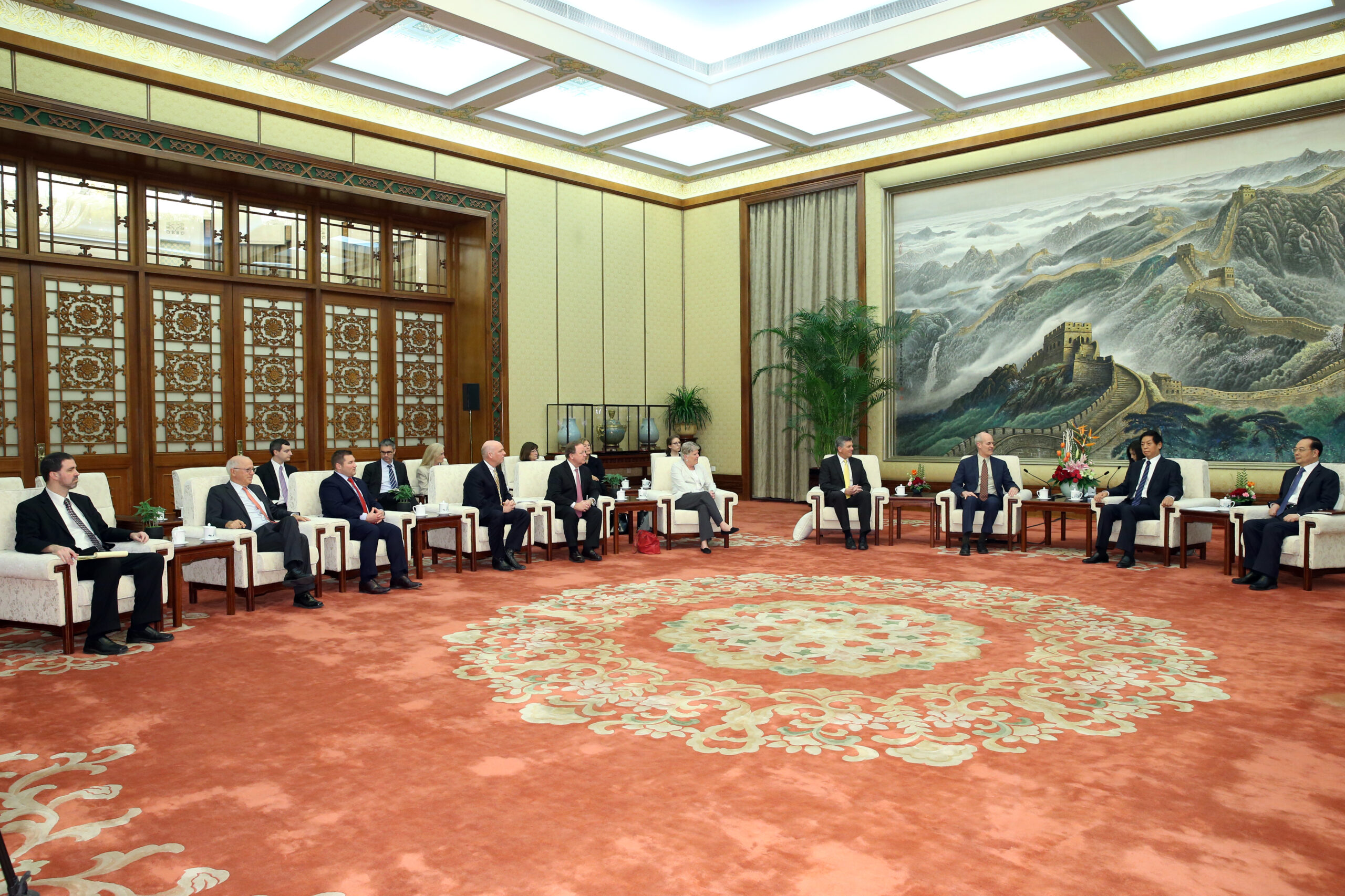 In September 2017, the National Committee escorted a seventh group to Beijing, Tianjin, Jinan, and Qufu. The delegation was led by the two current co-chairs of the USCWG, Congressmen Rick Larsen (D-WA-2) and Darin LaHood (R-IL-18), joined by Congressmen Gregorio Sablan (D-NMI), Sean Maloney (D-NY-18), David Young (R-IA-3), and Roger Marshall (R-KS-1). Meetings focused on issues of agriculture, aviation, and environmental protection; the situation surrounding North Korea was also a frequent topic of discussion. The delegation met with Chinese Vice Premier Wang Yang in Zhongnanhai, Chair Madame Fu Ying of the National People’s Congress, vice ministers of various ministries including Foreign Affairs, Agriculture, Environmental Protection, the Central Military Commission, foreign and local NGOs, American and Chinese businessmen, provincial and municipals officials from Shandong, among others.